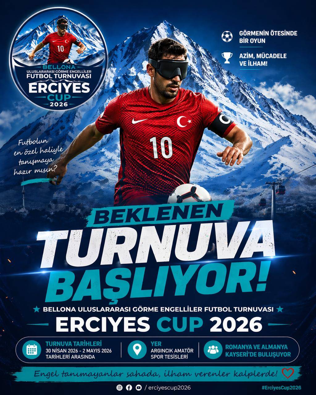 Bellona Uluslararası Görme Engelliler Futbol Turnuvası Erciyes Cup 2026, 30 Nisan - 2 Mayıs 2026 tarihleri arasında Türkiye ev sahipliğinde Romanya ve Almanya Milli Takımları’nın katılımıyla Kayseri’de yapılacak.