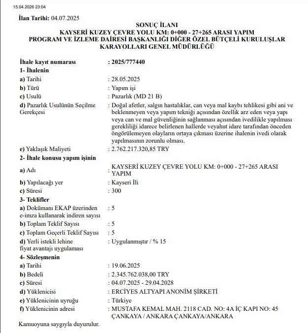 28 Mayıs 2025 tarihinde Karayolları tarafından yüzde 15 indirimle gerçekleştirilen bu ihale için konuşan Altun, "Şimdi buradan açıkça soruyoruz: Bu iş gerçekten acil miydi?