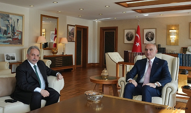 Talas Belediye Başkanı Mustafa Yalçın Kültür ve Turizm Bakanı Mehmet Nurie Ersoy'u makamında ziyaret etti.