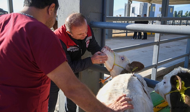 Kayseri İl Tarım ve Orman Müdürü Bülent Saklav, İlçe Müdürü Ahmet Dilmaç, Veteriner Hekimler Odası Başkanı Akgün Ergül, yeniden açılan canlı hayvan pazarında incelemelerde bulundu.