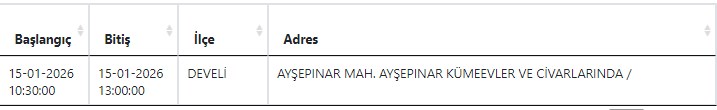 Kayseri ve Civarı Elektrik Türk Anonim Şirketi (KCETAŞ), vatandaşları yaşanacak elektrik kesintilerine ilişkin uyardı. Buna göre yarın (15 Ocak) Develi'de elektrik kesintisi yaşanacak.