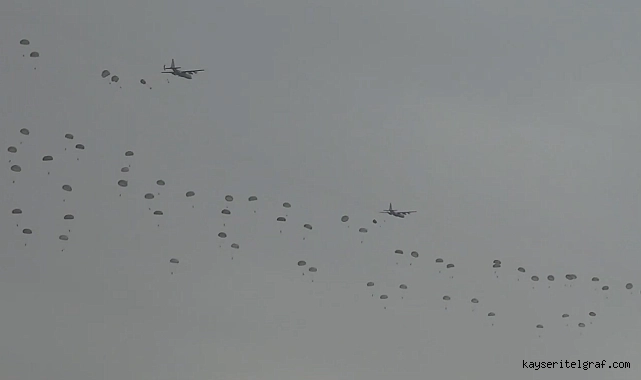 Tatbikat senaryosu kapsamında 12. Hava Ulaştırma Ana Üs Komutanlığından havalanan C-130, CN-235 ve A400M nakliye uçaklarındaki 35'i yabancı, 265 paraşütçü komando bölgeye indi.