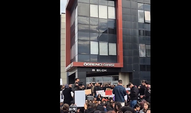 Erciyes Üniversitesi Rektörlük binası önünde “Rektör istifa” sloganları atıldı.