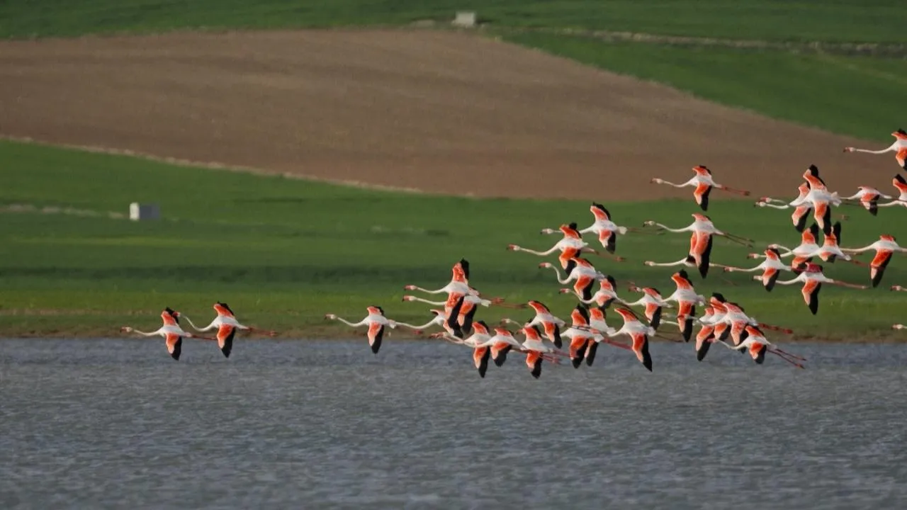 Bu yılki yağışlarla birlikte son yılların en yüksek su seviyesine ulaşan Tuzla Palas Gölü’nde çok sayıda flamingo görüntülendi. Yüzey alanı genişleyen göl, kuşların konaklama ve beslenme alanı haline gelirken, ortaya kartpostallık manzaralar çıktı. Doğal yaşam açısından büyük önem taşıyan bölgede flamingoların yeniden görülmesi, hem doğaseverleri hem de fotoğraf tutkunlarını sevindirdi. Göldeki flamingoların oluşturduğu görsel şölen objektiflere yansırken, bölge ekosisteminin yeniden güçlendiğine işaret ettiği değerlendiriliyor.