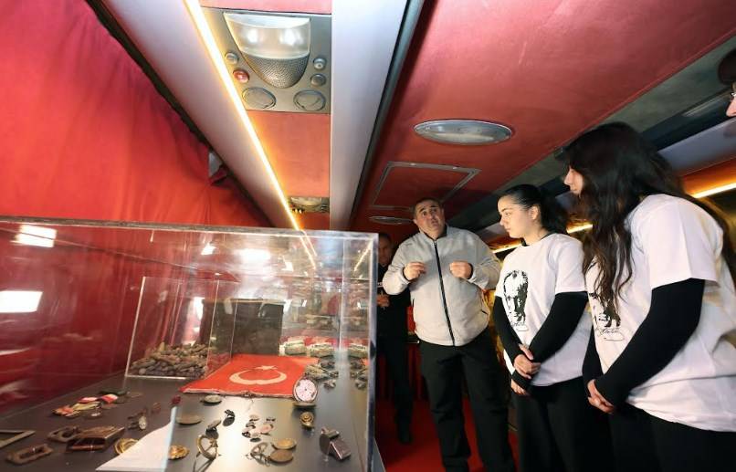 Okul bahçelerine kurulan müze otobüslerini ziyaret eden öğrenciler, Çanakkale ruhunu anlatan tarihi objeleri yakından inceleme fırsatı bulurken, Osmanlı döneminde yazılmış Kur’an-ı Kerim nüshalarının tıpkı basımlarını da görerek medeniyetimizin ilim ve sanat mirasını keşfetti.