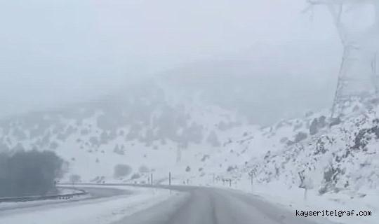 Pınarbaşı/Gürün Karayolu, Hava kapalı, kar yağışı mevcut, zemin karlı, çekici/tır trafiğine kapalı.