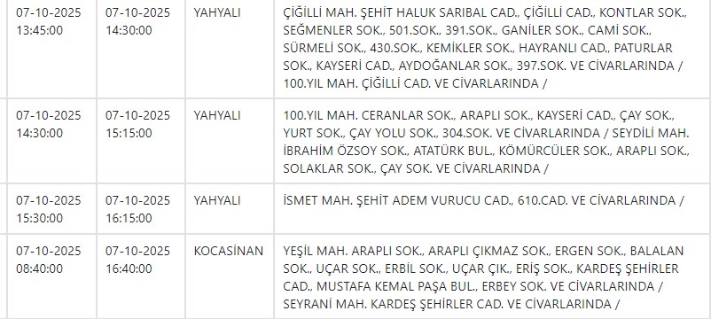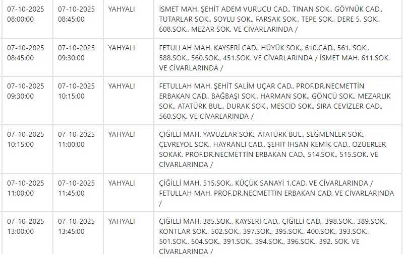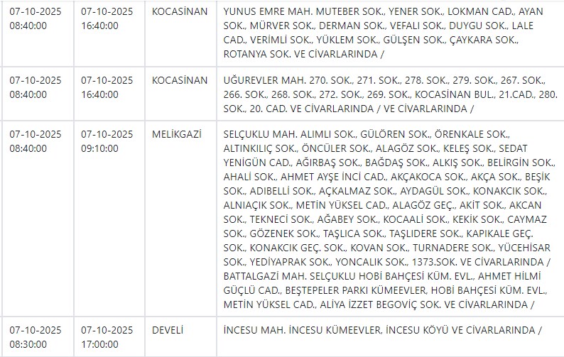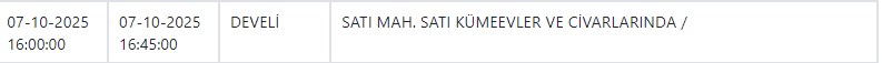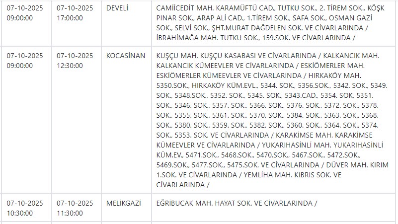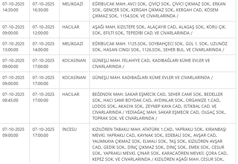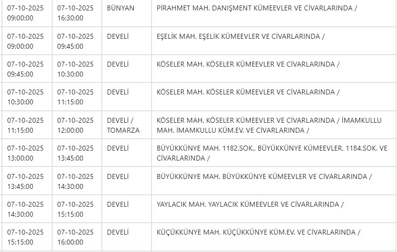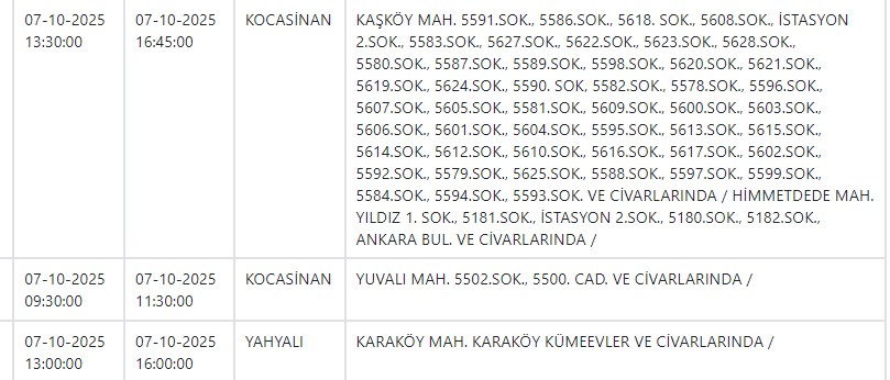 Özel Haber Yayınlanma: 06 Ekim 2025 - 15:01 İşte yarın Kayseri'de elektrik kesintisi yapılacak ilçe ve mahalleler Özel Haber 06 Ekim 2025 - 15:01 Yorumlar Yazdır A Büyüt A Küçült Yorumlar Kayseri ve Civarı Elektrik Türk Anonim Şirketi (KCETAŞ), vatandaşları yaşanacak elektrik kesintilerine ilişkin uyardı. Buna göre yarın (7 Ekim) bir çok ilçede elektrik kesintisi yaşanacak.İşte o ilçe ve mahalleler; YORUMLAR adlı kullanıcıya cevap x Gönder İlginizi Çekebilir Yarın Talas ve Yeşilhisar'da elektrik kesinitisi yaşanacak CHP'li Pala, Kayseri'de yalnız bir firmayla çalışılmasını sordu Yarın Talas'ta elektrik kesintisi var MHP'li Meclis Üyesi Yeniay'ın acı günü Son Haberler Yarın Talas ve Yeşilhisar'da elektrik kesinitisi yaşanacak Başkan Büyükkılıç, TÜRKSOY adaylığı için görüşmelerde bulundu BİST'te gong Meysu için çaldı İyi Partili Yücel: "Yağmur yağdı esnaf perişan oldu" Batman'da çarpışan iki araç şarampole yuvarlandı; 3 ölü Çok Okunan Haberler Hisarcık'taki kavgada yaralanan genç kurtarılamadı Argıncık'ta bir kadın evinde ölü bulundu 17 Aralık şehitlerimiz için anma töreni düzenlendi Son Yorumlananlar Kay Tv ve Kay Radyo'nun yeni sahibi Açıkgöz oldu Büyükşehir Belediyesi Erciyes'te iki dükkanı kiraya verecek Vali Çiçek'ten CHP Milletvekili Genç'e yanıt "Kayseri Lisesi’nin İstiklal Madalyası ile onurlandırılması gerektiğini düşünüyoruz" "Kayseri Lisesi’nin İstiklal Madalyası ile onurlandırılması gerektiğini düşünüyoruz"