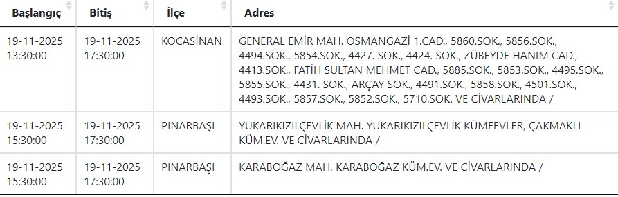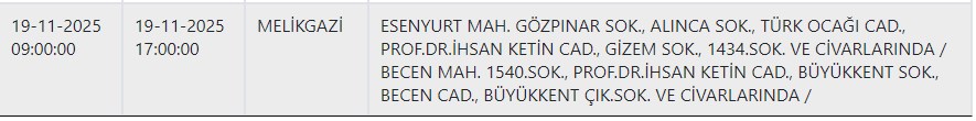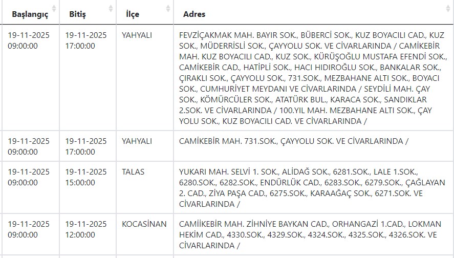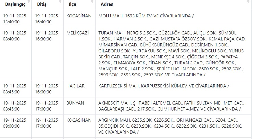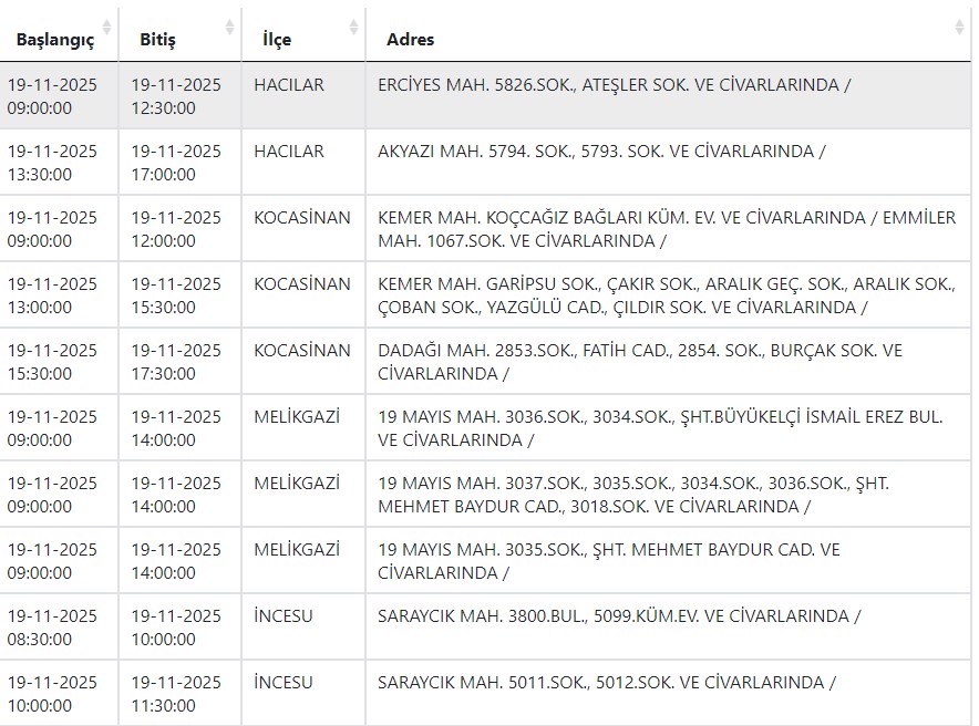 Kayseri ve Civarı Elektrik Türk Anonim Şirketi (KCETAŞ), vatandaşları yaşanacak elektrik kesintilerine ilişkin uyardı. Buna göre yarın (19 Kasım) bir çok ilçede elektrik kesintisi yaşanacak.
