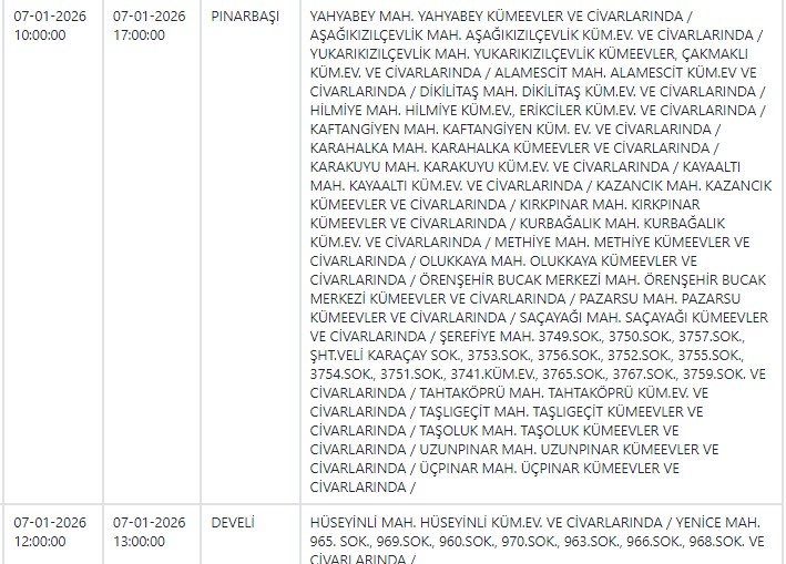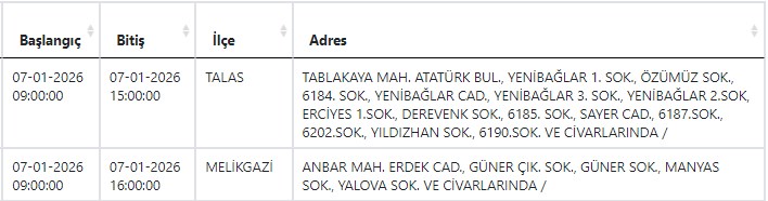 Kayseri ve Civarı Elektrik Türk Anonim Şirketi (KCETAŞ), vatandaşları yaşanacak elektrik kesintilerine ilişkin uyardı. Buna göre yarın (7 Ocak) bir çok ilçede elektrik kesintisi yaşanacak.