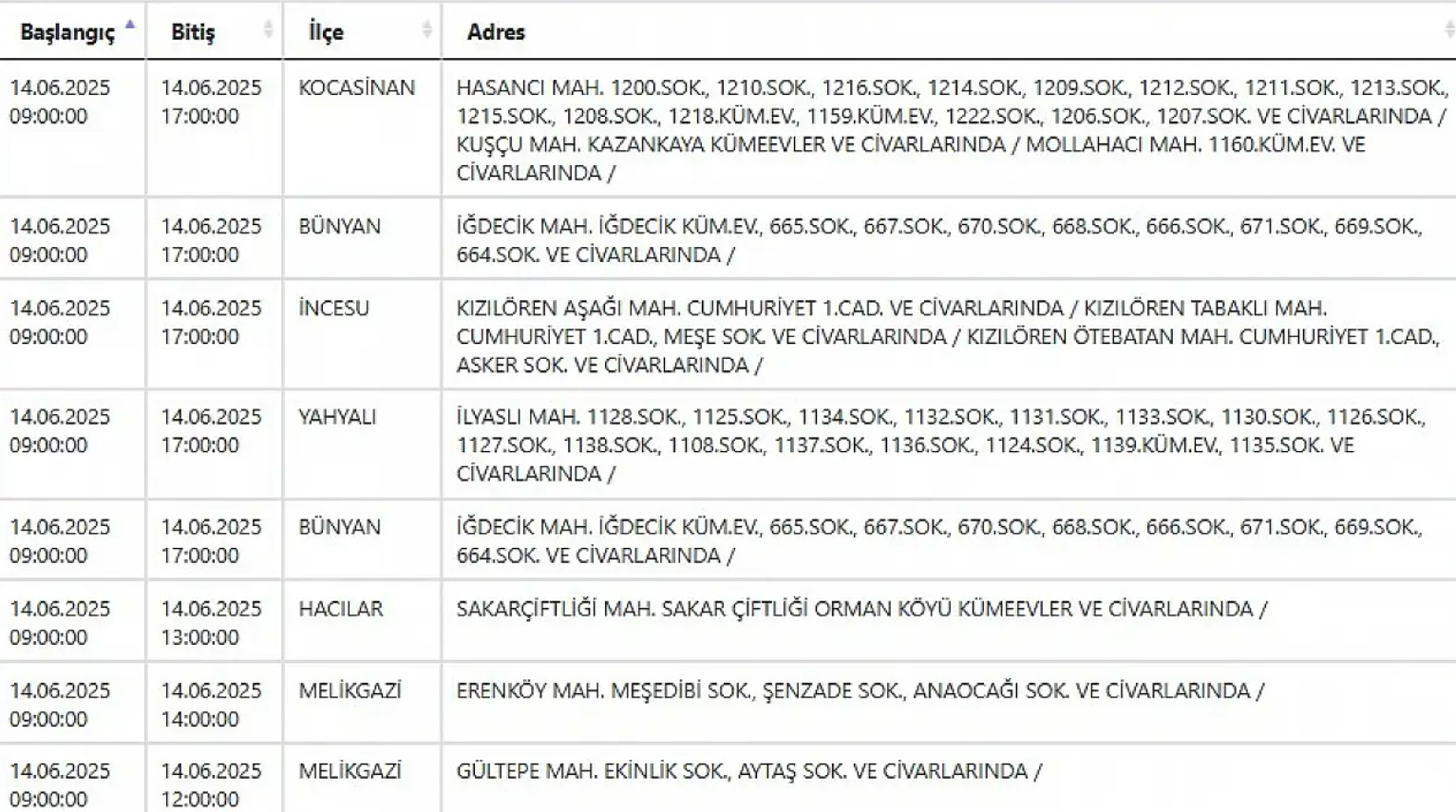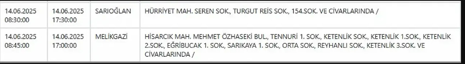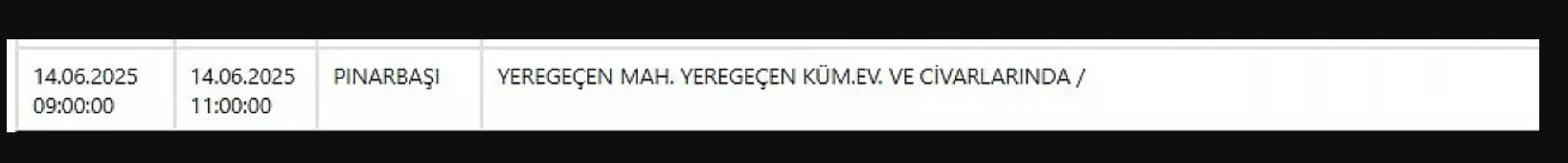 Kayseri ve Civarı Elektrik Türk Anonim Şirketi (KCETAŞ), vatandaşları yaşanacak elektrik kesintilerine ilişkin uyardı. Buna göre 14 Haziran günü (yarın) bir çok ilçede elektrik kesintisi yaşanacak.