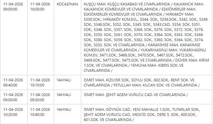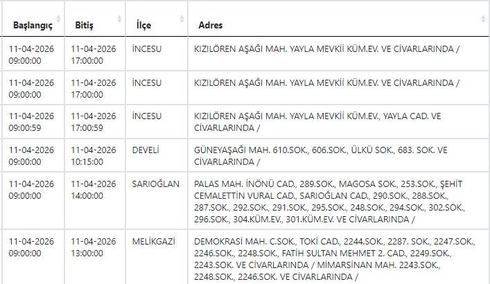Kayseri ve Civarı Elektrik Türk Anonim Şirketi (KCETAŞ), vatandaşları yaşanacak elektrik kesintilerine ilişkin uyardı. Buna göre yarın (11 Nisan) bir çok ilçede elektrik kesintisi yaşanacak.