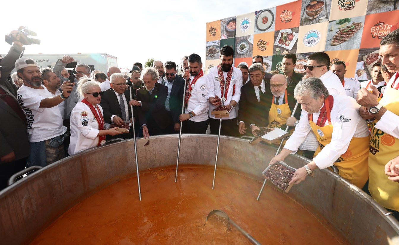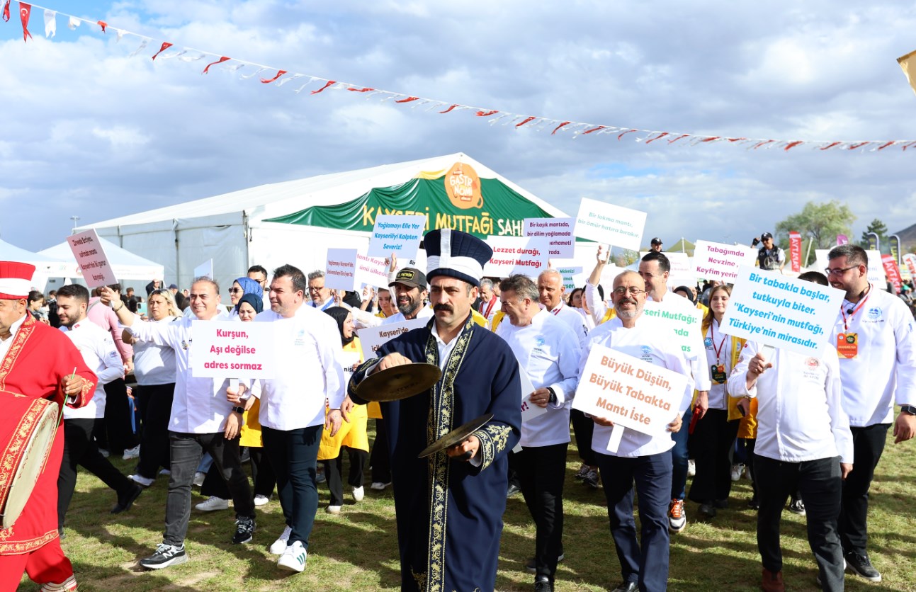 Ayrıca, Kayseri Gastronomi Festivali’nin açılışına özel bir ton pastırmalı gömeç kuru fasulye yemeği dağıtıldı.