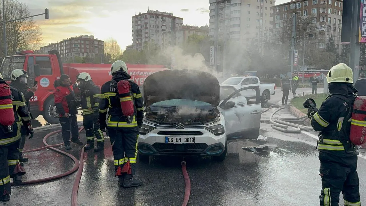 Yangın, saat 18.00 sıralarında Sivas Caddesi Aşıkveysel Bulvarı kavşağında meydana geldi. Z.K. idaresindeki 06 UM 3818 plakalı elektrikli otomobil, seyir halindeyken alev aldı. Kısa sürede büyüyen alevler otomobili kapladı. İhbar sonrası olay yerine polis ve itfaiye ekipleri sevk edildi. Adrese gelen ekipler yangını söndürmek için çalışma başlattı. Ekiplerin yaklaşık 1,5 saat süren çalışmasının ardından yangın söndürüldü. Araçta hasar meydana gelirken, polis olayla ilgili inceleme başlattı.