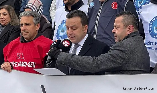 Türkiye Kamu-Sen Kayseri İl Temsilcisi Ramazan Sidar beraberindeki kamu çalışanları eski defterdarlık binası önünde basın açıklaması yaptı.