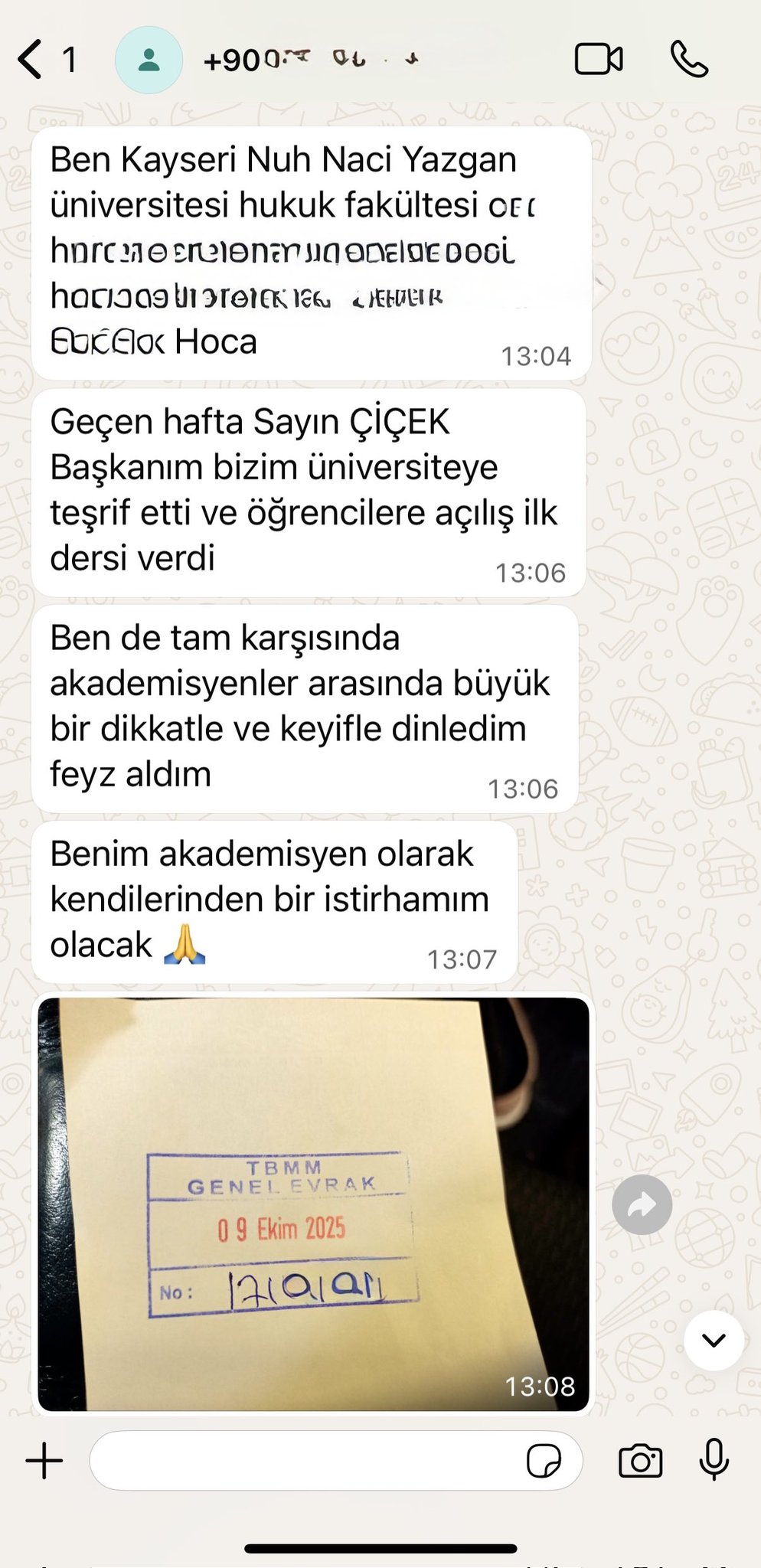 Nuh Naci Yazgan Üniversitesi’nde görevli bir akademisyen, eski Adalet Bakanı'na ulaştığını sanarak bir avukattan HSK üyeliği için referans olmasını istedi. Yanlış numaraya attığı mesajlar ortaya çıkan akademisyen ülke gündemine taşındı.