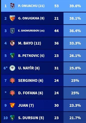 Bu verilere göre Onugkha ligde Trabzonsporlu Onuachu'nun ardından takımının gol yükün çeken ikinci oyuncu oldu.
