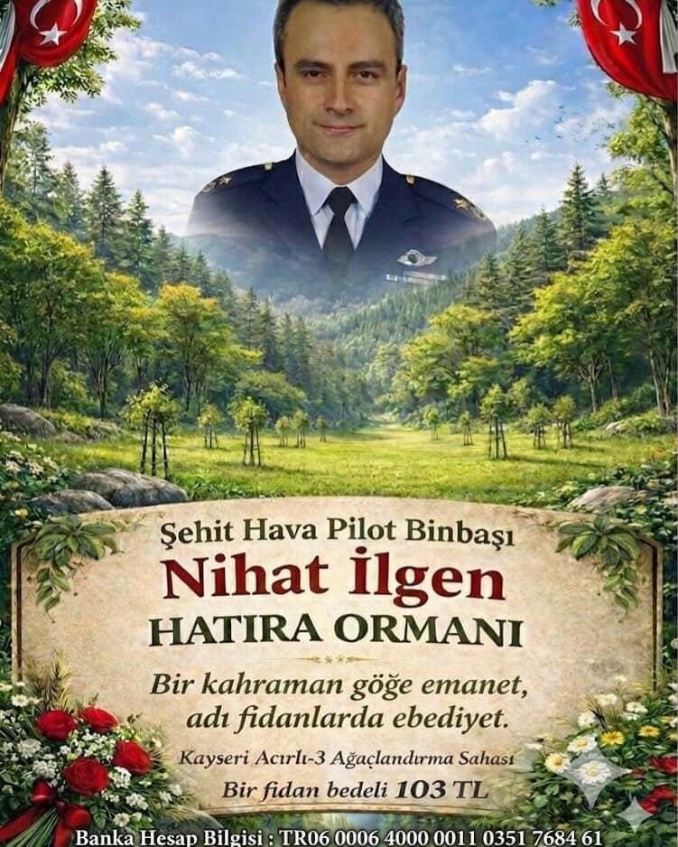 Azerbaycan–Gürcistan sınırında C-130 tipi askerî uçağın düşmesi sonucu şehit olan Hava Pilot Binbaşı Nihat İlgen için TEMA Vakfı aracılığıyla hatıra ormanı oluşturulacak. Hatıra Ormanı, TEMA Vakfı aracılığıyla Kayseri Acırlı 3 sahasında oluşturulacak. Böylelikle Şehit Hava Pilot Binbaşı Nihat İlgen’in adı, hatıra ormanına verilerek yaşatılacak.
