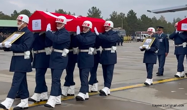 Gürcistan-Azerbaycan sınırında düşen uçakta şehit olan Hava Pilot Binbaşı Nihat İlgen ve Hava Uçak Bakım Astsubay Başçavuş Burak Özkan’ın naaşı Kayseri’ye getirildi.