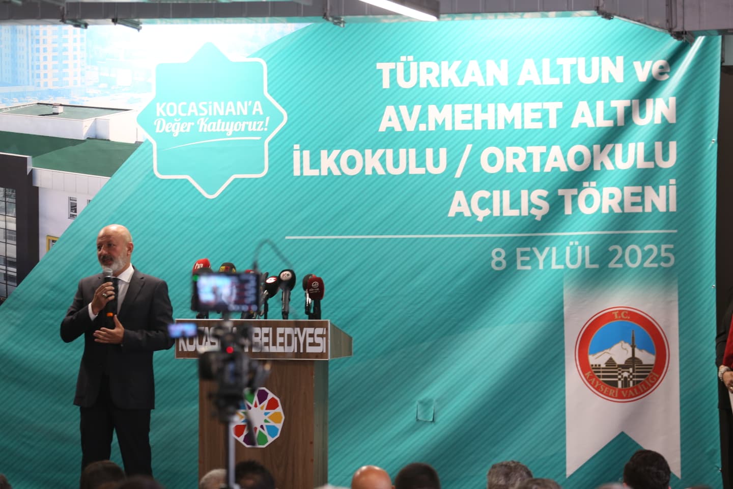 Başkan Çolakbayrakdar’ın ev sahipliğinde Yakut Mahallesi’nde düzenlenen ‘Türkan Altun ve Av. Mehmet Altun İlkokulu/Ortaokulu’nun açılış törenine; Kayseri Valisi Gökmen Çiçek, önceki dönem Çevre, Şehircilik ve İklim Değişikliği Bakanı Mehmet Özhaseki, AK Parti Kayseri Milletvekilleri Dr. Murat CahidCıngı ve Sayın Bayar Özsoy, Büyükşehir Belediye Başkanı Memduh Büyükkılıç, AK Parti İl Başkanı Hüseyin Okandan, Kocasinan Kaymakamı Erdoğan Turan Ermiş, Kayseri İl Millî Eğitim Müdürü Coşkun Esen, Kocasinan İlçe Millî Eğitim Müdürü Sıddık Kaya, hayırsever Mehmet Altun ailesi, hayırsever Osman Ulubaş, sivil toplum kuruluşları, il müdürleri, oda başkanları, meclis üyeleri, kamu kurum ve kuruluşların temsilcileri, muhtarlar ve Kayserililer katıldı.