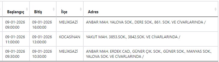 Kayseri ve Civarı Elektrik Türk Anonim Şirketi (KCETAŞ), vatandaşları yaşanacak elektrik kesintilerine ilişkin uyardı. Buna göre yarın (9 Ocak) Anbar ve Yakut mahallelerinde elektrik kesintisi yaşanacak.