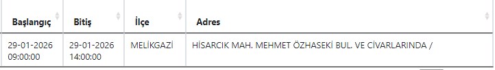 Kayseri ve Civarı Elektrik Türk Anonim Şirketi (KCETAŞ), vatandaşları yaşanacak elektrik kesintilerine ilişkin uyardı. Buna göre yarın (29 Ocak) Mehmet Özhaseki Bulvarı'nda elektrik kesintisi yaşanacak.