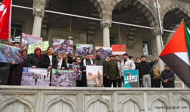 Filistin’e destek için Kayseri Cumhuriyet Meydanı Bürüngüz Cami önünde vatandaşlar ve TÜGVA Kayseri İl Temsilcisi İsmail Vefa Bayırbaş basın açıklaması yaptı. Yeni yılın ilk gününde Galata Köprüsü’nde olacaklarını vurgulayan TÜGVA (Türkiye Gençlik Vakfı) Kayseri İl Temsilcisi İsmail Vefa Bayırbaş, “Milli İrade Platformu ve İnsanlık İttifakı çatısı altında 400’ü aşkın paydaş sivil toplum kuruluşuyla birlikte, kamu vicdanını diri tutmak ve insanlık onurunu savunmak amacıyla barışçıl şahitlik çağrımızı yineliyoruz. Yeni yılın ilk gününde 1 Ocak’ta, saat 08.30’da Galata Köprüsü’nde sinmiyoruz, susmuyoruz, Filistin’i unutmuyoruz. Yüz binlerce vicdan sahibiyle birlikte tüm dünyayı uyandırıyoruz. Söylenen her söz yarın çocukların hatırasında ya utanç ya da onur olarak kalacaktır. Yeni yılın ilk mesajını tüm dünyaya Galata’da veriyoruz” açıklamalarında bulundu.
